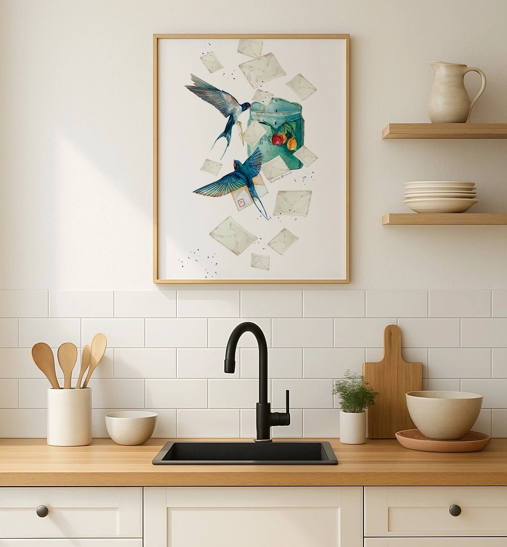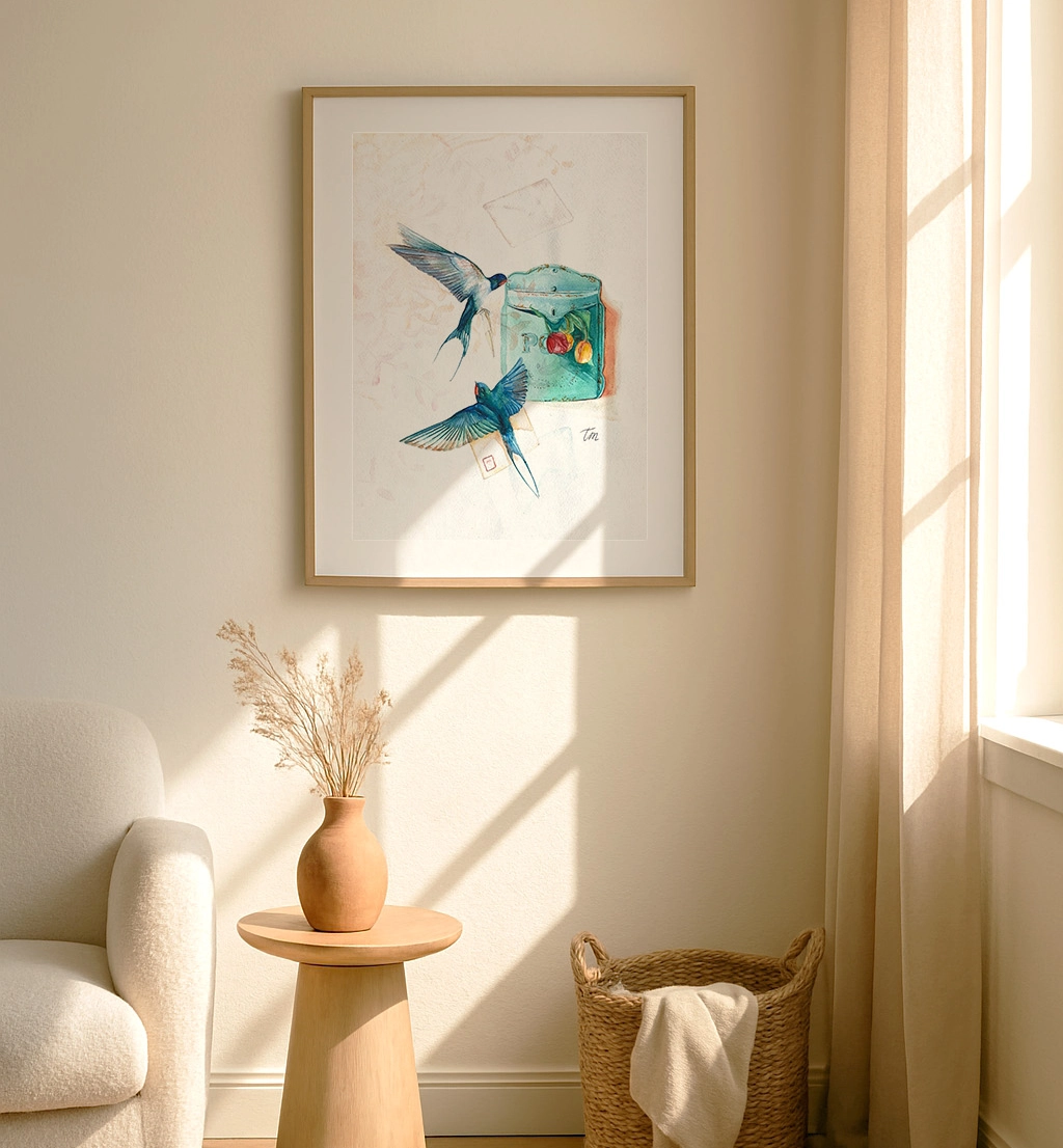 Be the first to review “Blue Swallows | Vintage Post Illustration”