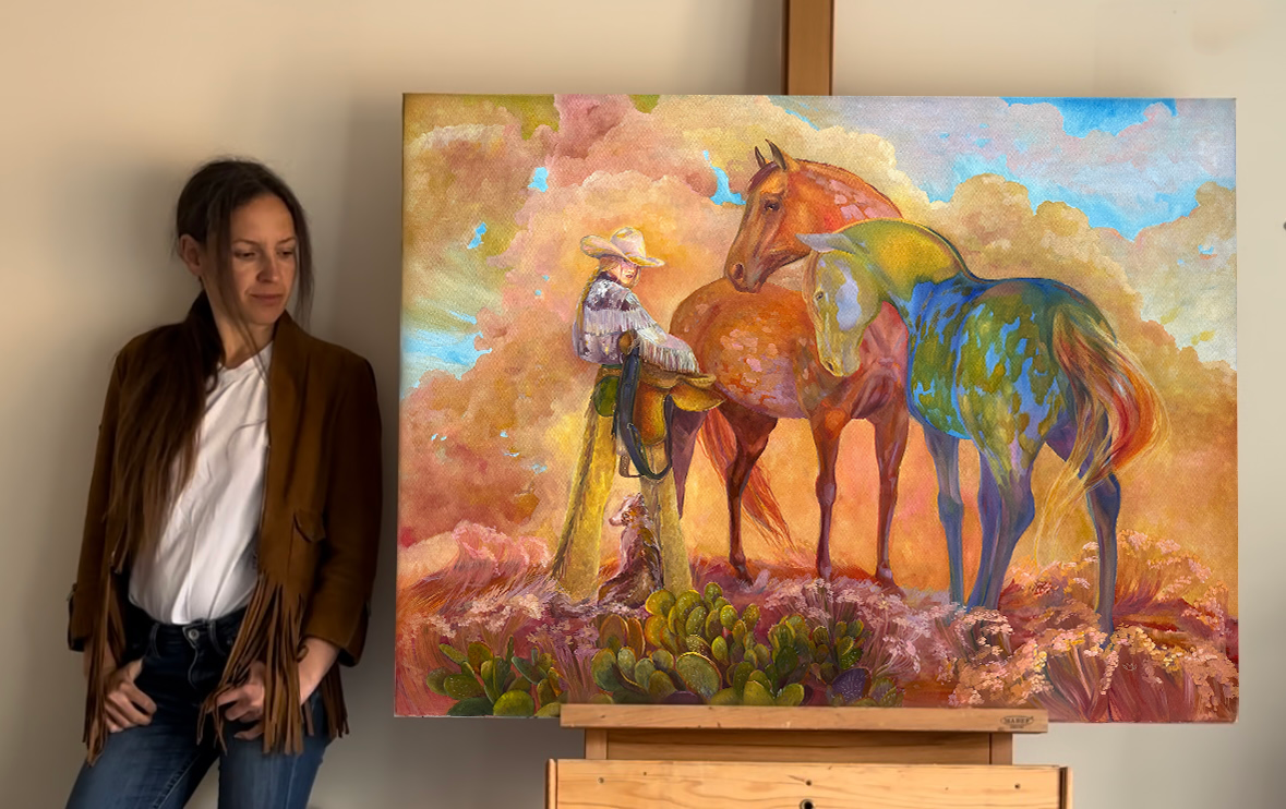 “The Quiet Before the Ride” is not just a portrayal of a cowgirl and her horse, but a meditation on solitude, strength, and the deep connection between humans and nature. It evokes the spirit of the frontier — quiet, yet resolute — where each day brings new challenges, but also new beginnings.