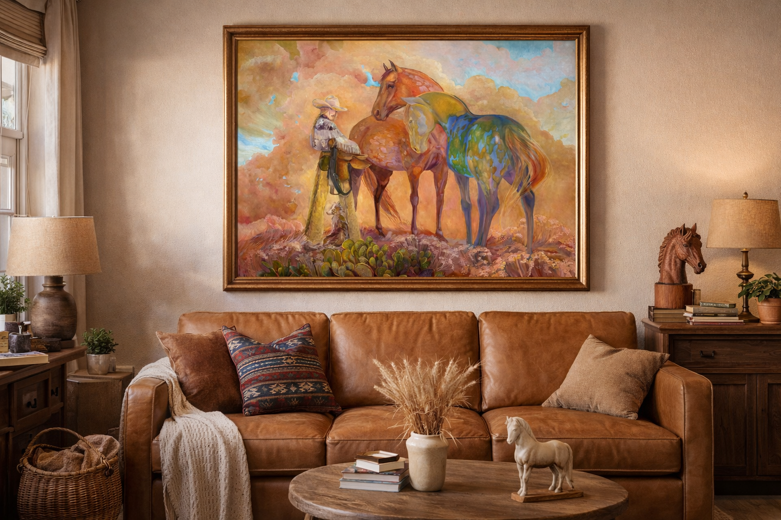 This piece, painted on high-quality canvas with premium oil paints, promises to remain vibrant and striking for years to come. At 1220×920 mm, it is the perfect focal point for any room, whether it’s a rustic ranch, modern farmhouse, or gallery wall. It’s a timeless piece that captures the essence of the western lifestyle and the enduring spirit of the cowgirl.