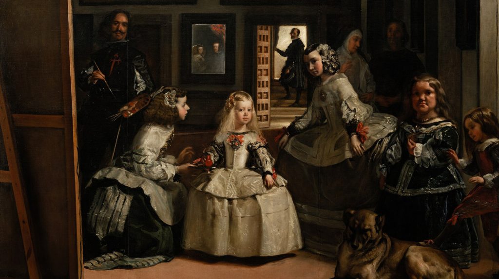 In front of you — the Infanta, the attendants, the painter, the dwarf.